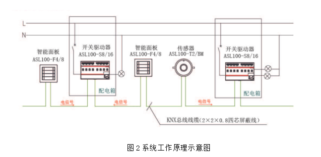 4)系統(tǒng)采用分布分布式KNX總線結(jié)構(gòu),搭建簡單靈活,系統(tǒng)內(nèi)各模塊互不影響,可獨立工作,可靠性更高;