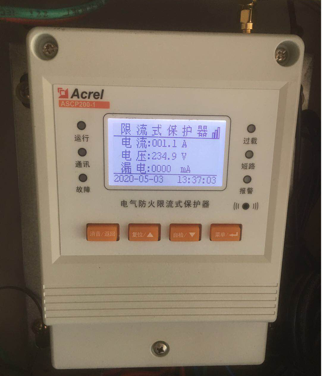本次使用的是ASCP200-1型電氣防火限流式保護(hù)器,保護(hù)器是單相限流式保護(hù)器,額定電流為63A??蓮V泛應(yīng)用于學(xué)校、醫(yī)院、商場、賓館、娛樂場所、寺廟、文物建筑、會展、住宅、倉庫、幼兒園、老年人建筑、集體宿舍、電動車充電站及租賃式商場商鋪、批發(fā)市場、集貿(mào)市場、甲乙丙類危險品庫房等各種用電場所末端干、支路的線路保護(hù)。本項目安裝于住宅的進(jìn)戶開關(guān)處,能夠保障住宅末端用電安全。