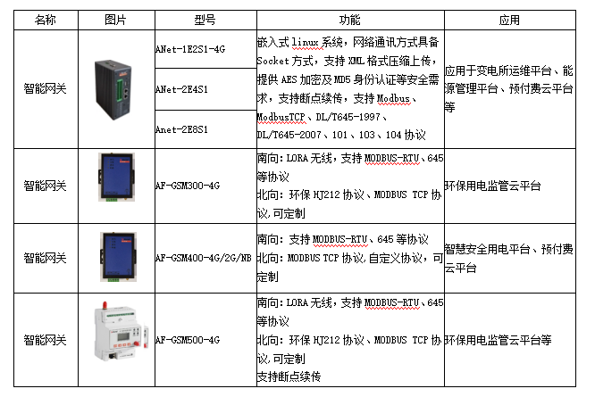 安科瑞針對物聯(lián)網應用開發(fā)了多款智能網關,采用嵌入式系統(tǒng)和邊緣計算技術,現(xiàn)場采集和存儲終端設備數(shù)據(jù),并根據(jù)云平臺的需要,采用不同的協(xié)議和云平臺對接。所有數(shù)據(jù)采集、計算、異常報警觸發(fā)邏輯均在網關就地設置,網絡故障時數(shù)據(jù)存儲在本地,網絡恢復后補傳數(shù)據(jù),斷點續(xù)傳,提高數(shù)據(jù)可靠性。