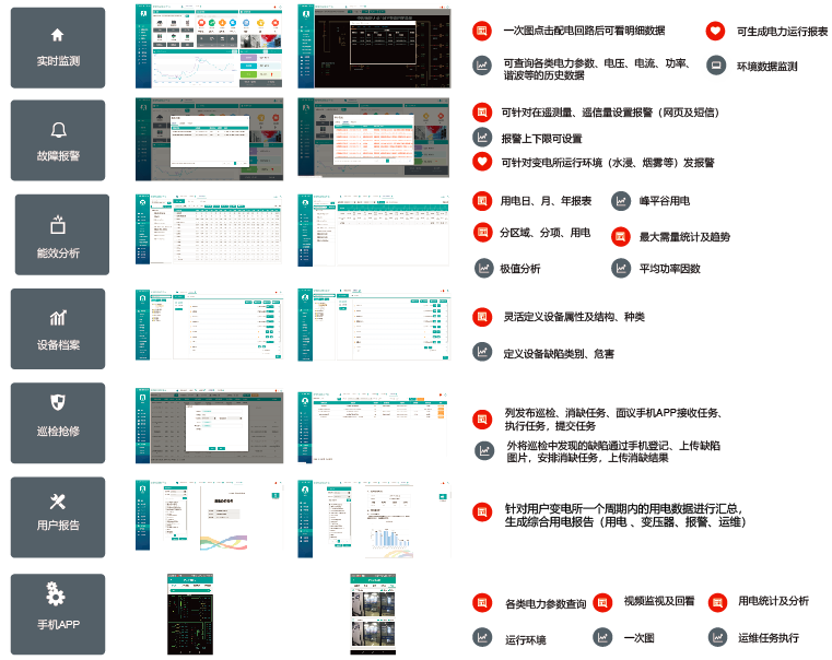 AcrelCloud-1000電力運維云平臺采用多功能電力儀表、無線通信、邊緣計算網關及大數(shù)據(jù)分析技術,通過智能網關采集現(xiàn)場數(shù)據(jù)并存儲在本地,再定時向云平臺推送數(shù)據(jù)。平臺可同時接入數(shù)以千計的用戶變電站數(shù)據(jù)。平臺采集的數(shù)據(jù)包括變電所電氣參數(shù)和環(huán)境數(shù)據(jù),包括電流電壓功率、開關狀態(tài)、變壓器溫度、環(huán)境溫濕度、浸水、煙霧、視頻、門禁等信息,有異常發(fā)生10S內通過短信和APP發(fā)出告警信號。平臺通過手機APP下發(fā)運維任務到指定人員手機上,并通過GPS跟蹤運維執(zhí)行過程進行閉環(huán),提高運維效率,即時發(fā)現(xiàn)運行缺陷并做消缺處理。