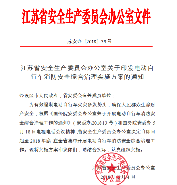 2018515日國務(wù)院發(fā)布《國務(wù)院安委會辦公室關(guān)于開展電動自行車消防安全綜合治理工作的通知》開展電動自行車消防安全綜合治理工作。