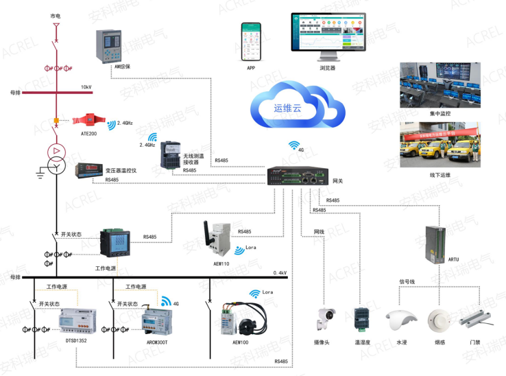 AcrelCloud-1000電力運(yùn)維云平臺(tái)采用多功能電力儀表、無線通信、邊緣計(jì)算網(wǎng)關(guān)及大數(shù)據(jù)分析技術(shù),通過智能網(wǎng)關(guān)采集現(xiàn)場(chǎng)數(shù)據(jù)并存儲(chǔ)在本地,再定時(shí)向云平臺(tái)推送數(shù)據(jù)。平臺(tái)可同時(shí)接入數(shù)以千計(jì)的用戶變電站數(shù)據(jù)。平臺(tái)采集的數(shù)據(jù)包括變電所電氣參數(shù)和環(huán)境數(shù)據(jù),包括電流電壓功率、開關(guān)狀態(tài)、變壓器溫度、環(huán)境溫濕度、浸水、煙霧、視頻、門禁等信息,有異常發(fā)生10S內(nèi)通過短信和APP發(fā)出告警信號(hào)。平臺(tái)通過手機(jī)APP下發(fā)運(yùn)維任務(wù)到指定人員手機(jī)上,并通過GPS跟蹤運(yùn)維執(zhí)行過程進(jìn)行閉環(huán),提高運(yùn)維效率,即時(shí)發(fā)現(xiàn)運(yùn)行缺陷并做消缺處理。